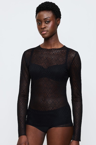 Áttetsző hosszú ujjú hímzett pizsamafelső