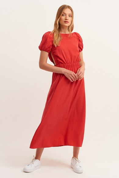 A-vonalú lyocell tartalmú ruha puffos ujjakkal