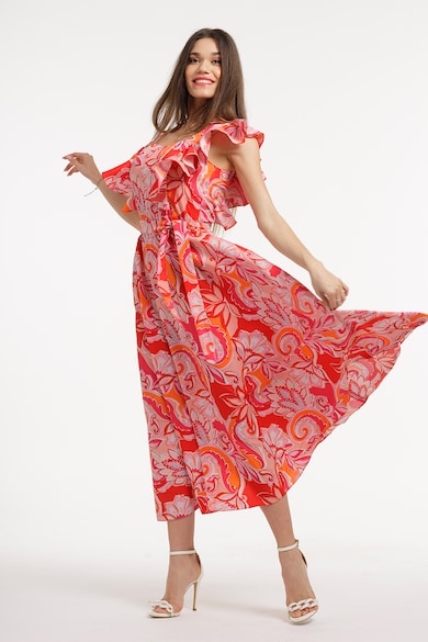 A-vonalú mintás midiruha megkötős derékrésszel