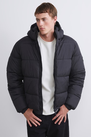 Bélelt télikabát kapucnival, Fekete,