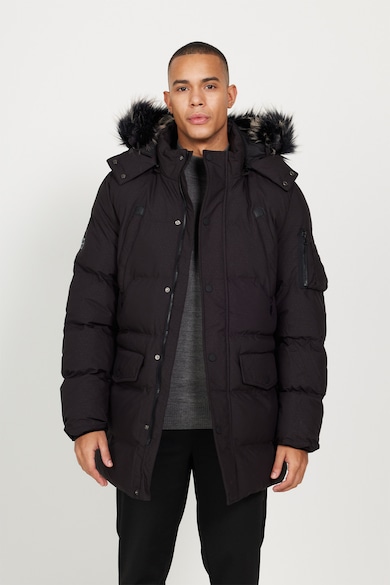 Bélelt télikabát műszőrme szegélyes kapucnival