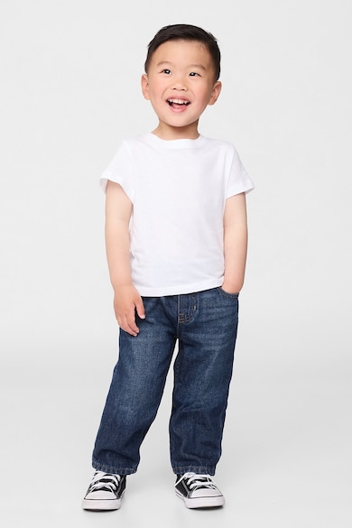 Bő fazonú farmernadrág rugalmas derékrésszel és szárvégekkel