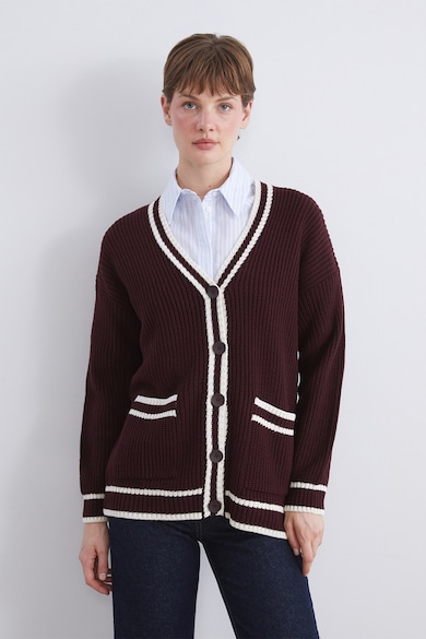 Bő fazonú kardigán kontrasztos csíkokkal, Fehér, Bordó,