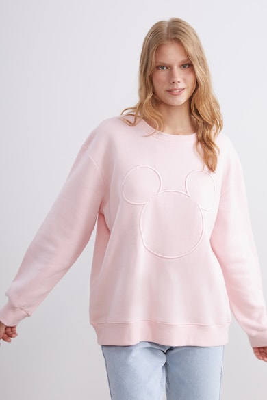 Bő fazonú pulóver Mickey egeres mintával, Pasztellrózsaszín,