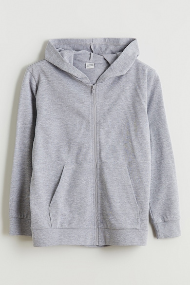 Cipzáros egyszínű pulóver kapucnival, Világosszürke,