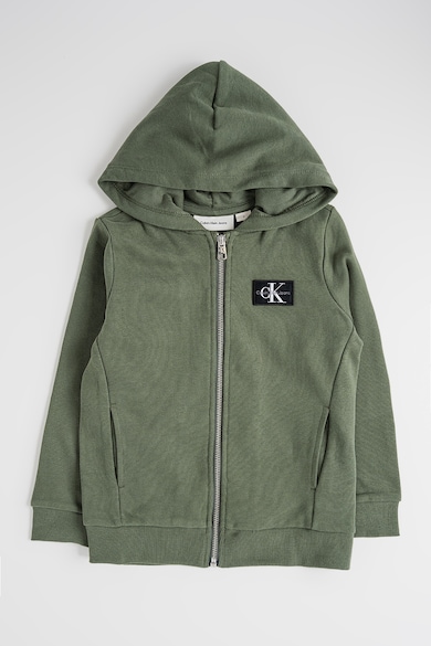 Cipzáros pulóver kapucnival és oldalzsebekkel