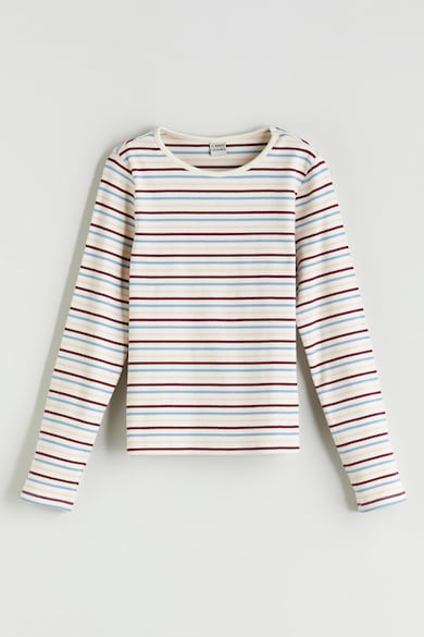 Csíkos pamuttartalmú felső, Pasztellkék, Bíborszín, Krémszín,