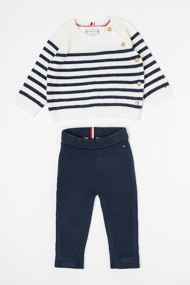Csíkos pamuttartalmú pulóver és nadrág szett