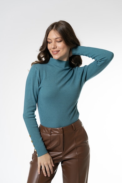 Finomkötött pulóver díszgombokkal, Türkiz,