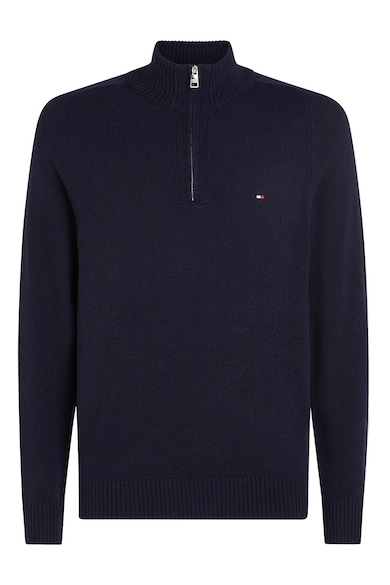 Gyapjúpulóver rövid cipzáros nyakkivágással