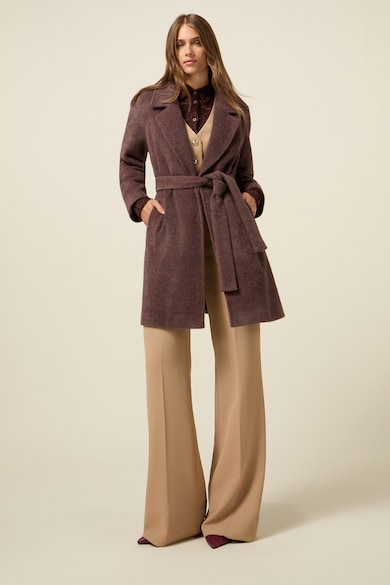 Hajtókás gallérú kabát megkötővel a derékrészén