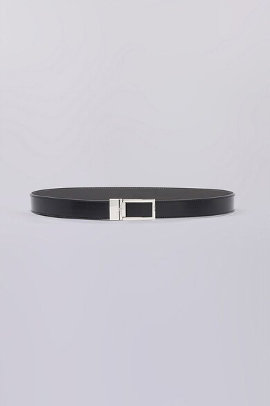 Kétoldalú bőröv diszkrét logós részlettel, Fekete,