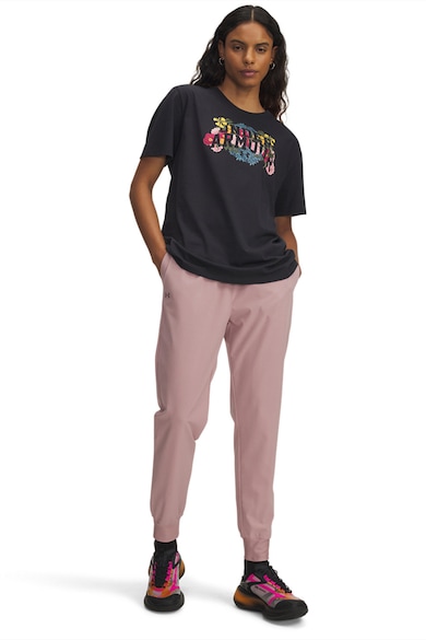 Középmagas derekú logós szabadidőnadrág, Púderrózsaszín,