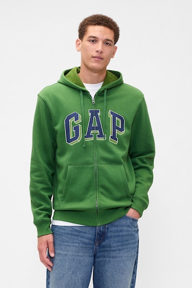 Kapucnis cipzáros pulóver logóval, Zöld,