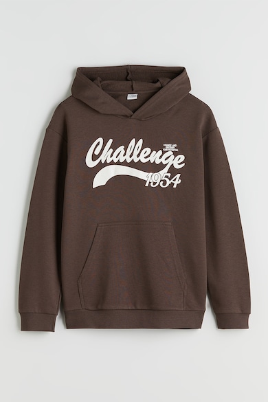 Kapucnis feliratos pulóver kenguruzsebbel, Fehér, Agyagbarna,