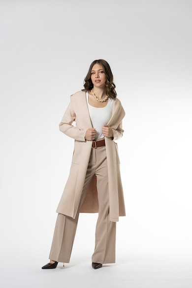 Kapucnis hosszú kardigán megkötővel a derékrészen, Bézs,