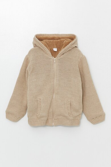 Kapucnis kötött pulóver plüssbéléssel