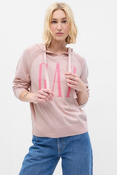Kapucnis pamutpulóver raglánujjakkal, Púderrózsaszín,