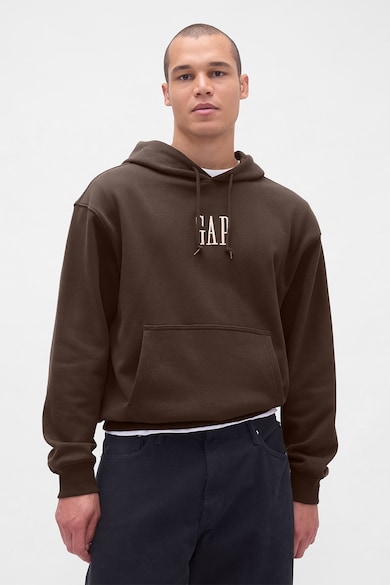 Kapucnis pulóver logóhímzéssel és kenguruzsebbel, Fehér, Agyagbarna,
