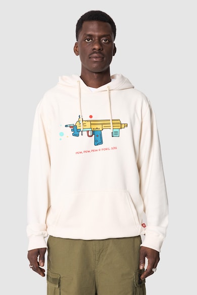 Kapucnis uniszex pamuttartalmú pulóver mintával
