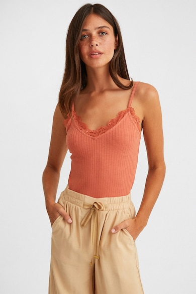 Kasvedan V-nyakú csipkés top, Koptatott piros,