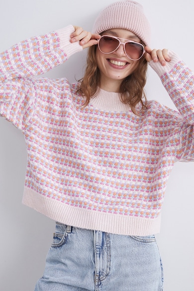 Kerek nyakú bő fazonú pulóver, Pasztellrózsaszín,