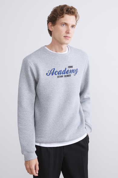 Kerek nyakú feliratos pulóver, Melange szürke,