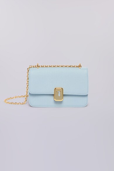 Keresztpántos bőrtáska láncos pánttal, Jégkék
