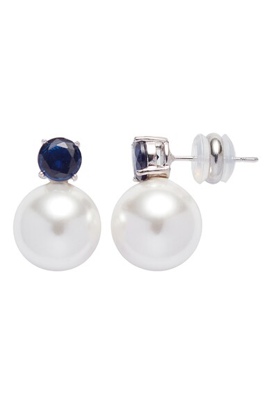 Kristályokkal díszített bedugós műgyöngy fülbevaló, Sötétkék, Fehér