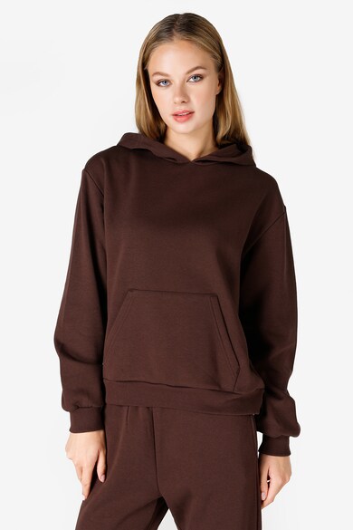 Laza fazonú kapucnis pulóver kenguruzsebbel