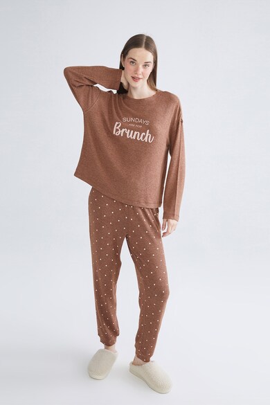 Mintás hosszú pizsama, Barna,