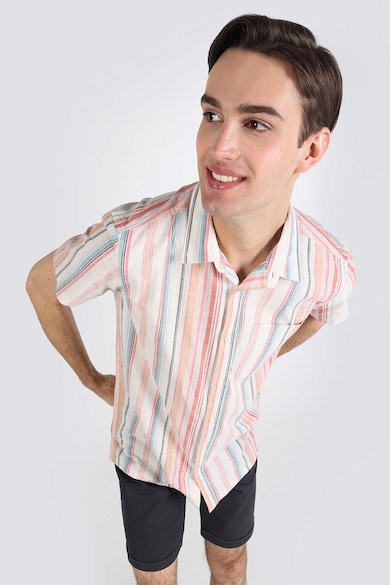 Normál fazonú csíkos ing, Fehér, Korallszín, Levendulakék,