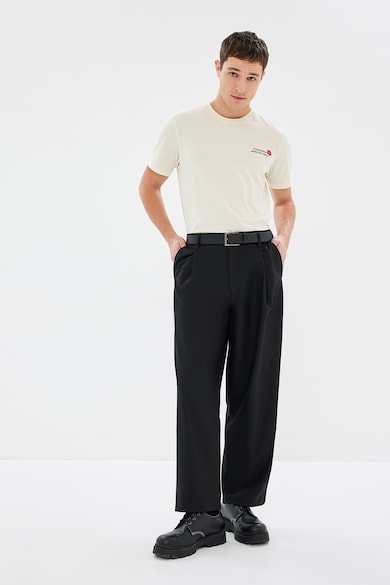 Normál fazonú póló kontrasztos mintával a hátoldalán, Piros, Törtfehér,