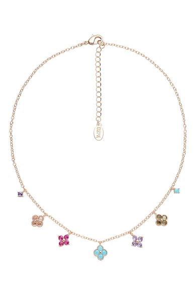Nyaklánc kristályokkal és virágos részletekkel, Aranyszín, Türkiz, Halványlila