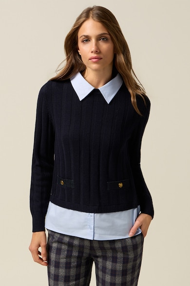 OLTRE, Kerek nyakú gyapjútartalmú pulóver, Sötétkék, Világoskék,