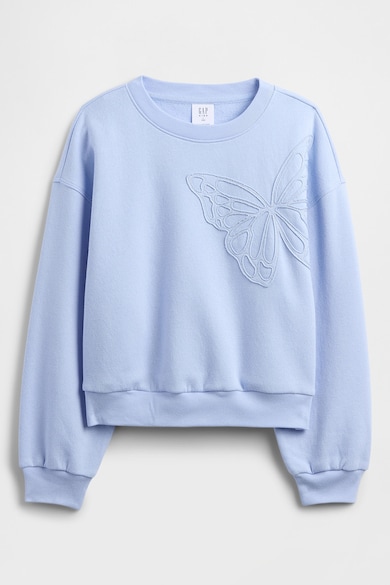 Pamuttartalmú pulóver hímzéssel, Jégkék,