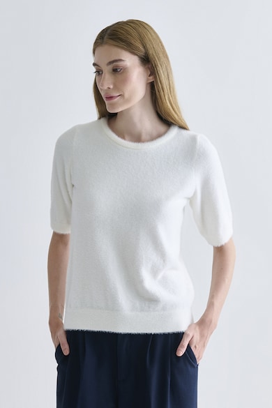Rövid ujjú bolyhos pulóver, Csontszín,