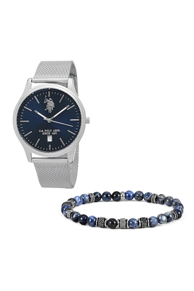 Rozsdamentes acél karkötő és karóra szett féldrágakövekkel díszítve