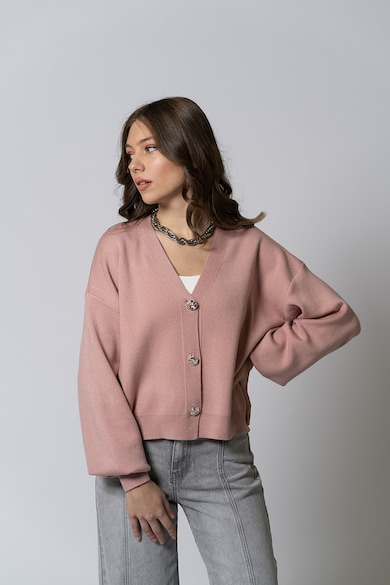 Ryana V-nyakú kardigán ejtett ujjakkal, Púderrózsaszín,