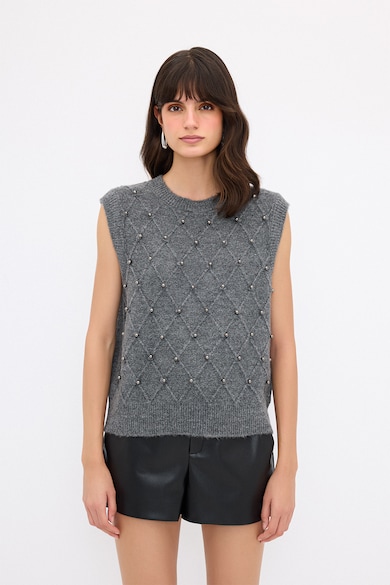 Részletek: fémes hatású rátétekkel díszítve, rombuszmintás