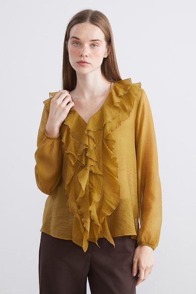 V-nyakú fodros blúz