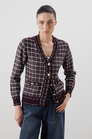 V-nyakú kardigán kontrasztos gombokkal