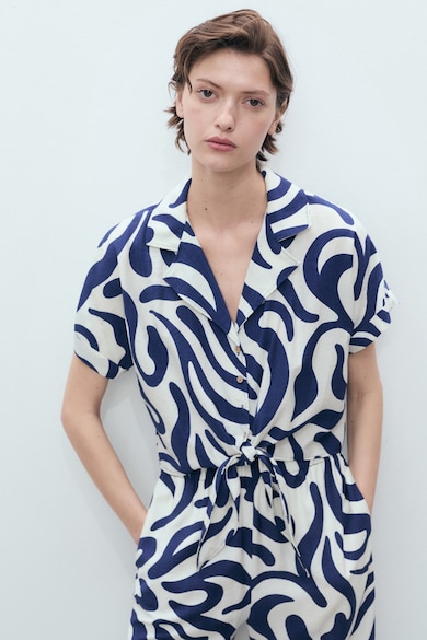 V-nyakú mintás ing húzózsinórral