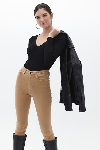 V-nyakú szűk fazonú pulóver