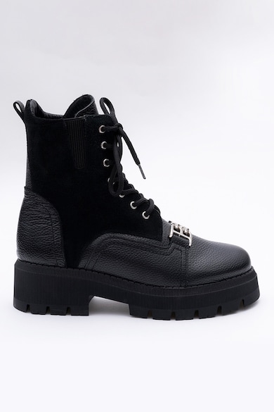 Vastag sarkú bakancs nyersbőr részlettel, Fekete,